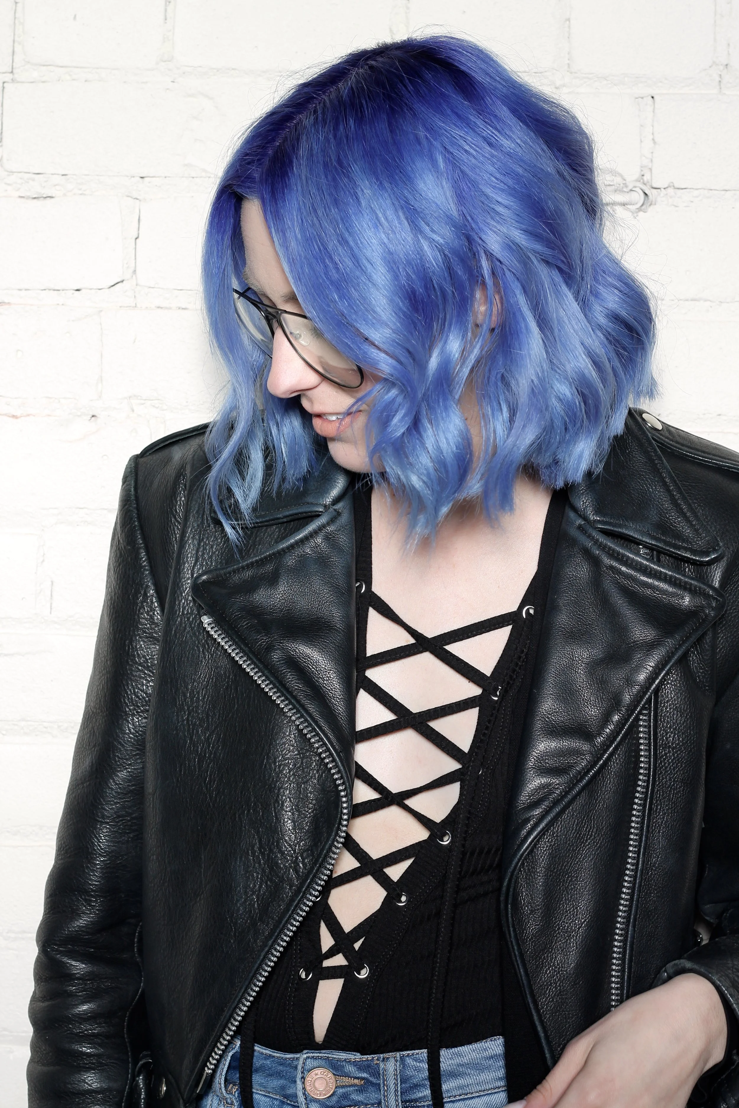 For whatever reason, as of late I've grown tired of my pastel locks. So, during my latest visit with the incredibly talented Nikki Kennedy of Good Day Hair Shop, I decided to shake things up with a bright blue ombre. I typically head into Good Day without a hair colour in mind, but this time I not only had a colour picked out, I had an entire hairstyle I wanted to work towards! I've been playing around with the idea of going for a longer style; think collar bone length, choppy bangs, shadowed roots, and of course a colourful ombre. I talked the vision through with Nikki and we both decided that I should go for it , not only for the look, but also to give my locks a rest from bleaching.